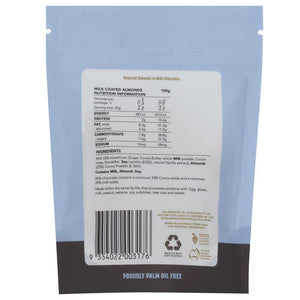 Australian grown, roasted almonds, coated in milk couverture.