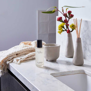 Myrtle & Moss' Flora Botanical Interior Scent is beautifully scented with Vetiver, Gardenia, Orange, Jasmin & Rhubarb. Come in a stylish frosted glass bottle in a lovely shade of Pebble Grey that will add elegance to every room.