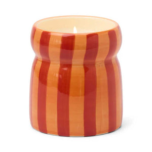 Bring home the holiday season with the Spiced Apple cabana ceramic candle. Housed in a hand-painted orange and red vessel with a matching lid, this festive candle blends crisp apple with warm spices for a cosy, nostalgic scent.