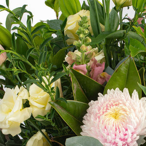 A classic all-round bouquet that highlights the best blooms and foliage of the season. Beautifully gift wrapped and ready for a vase at home, hospital or office.